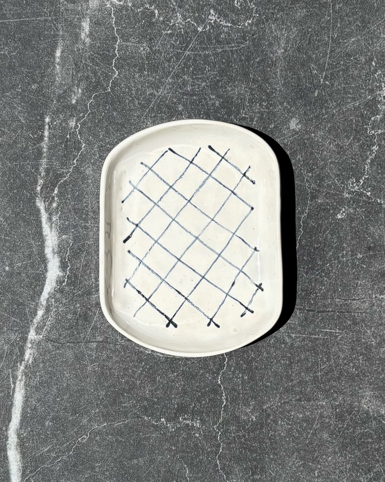 Hand made, one-off, patterned trinket dish measuring roughly 4”x3”. Handwashing is best if needed!